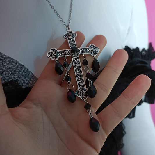 Beaded Necklace, Gold Cross, Gothic/Catholic Inspired