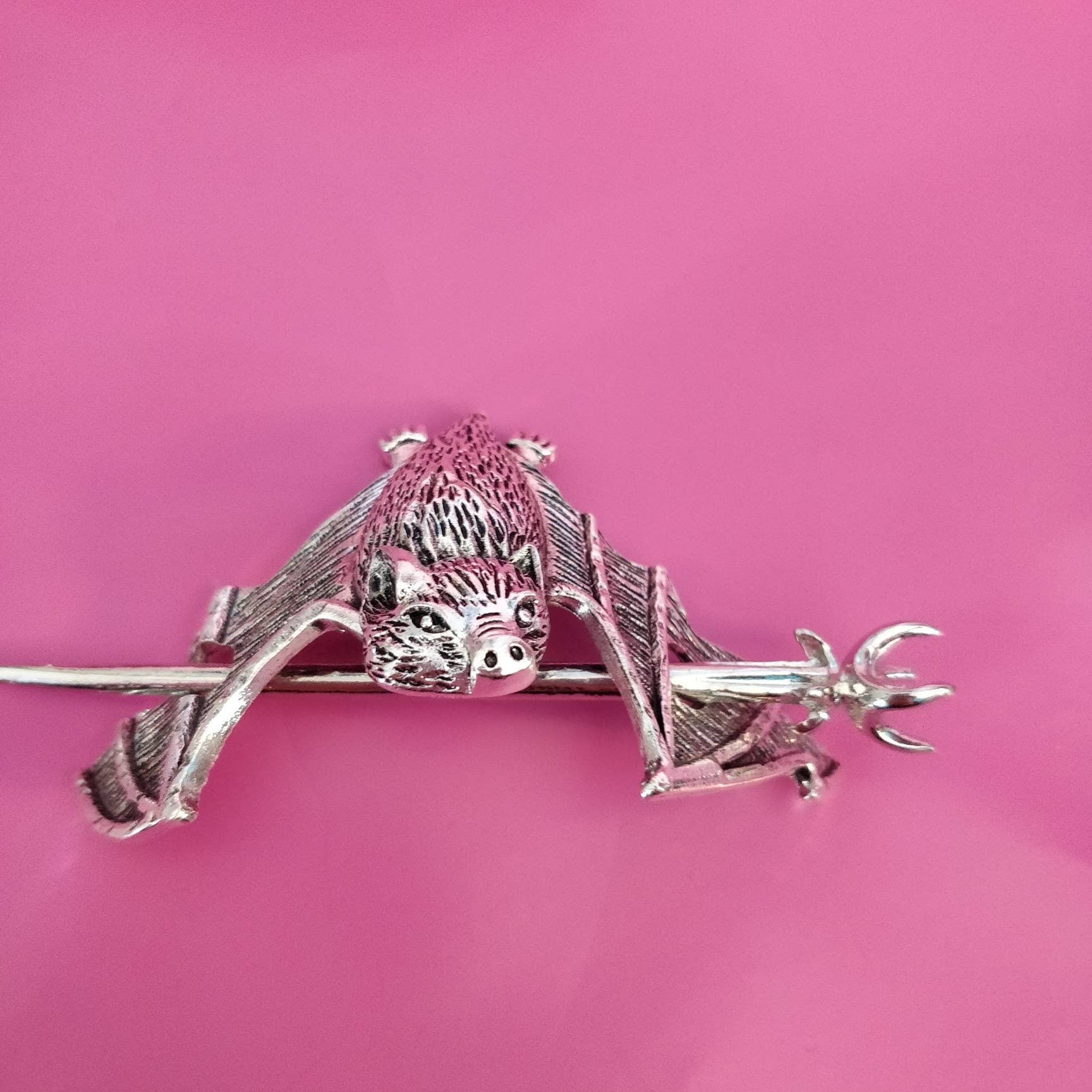 Woodcut style 3d sturdy bat hair clip