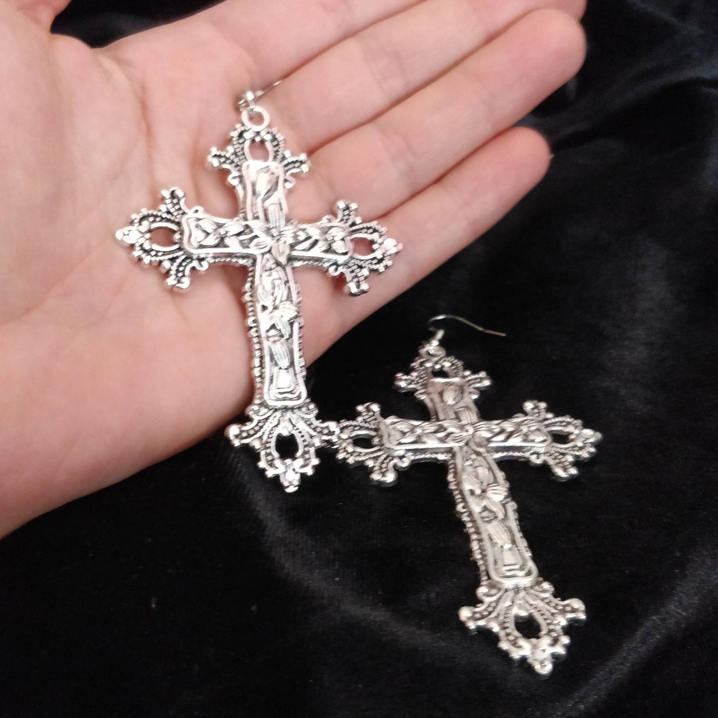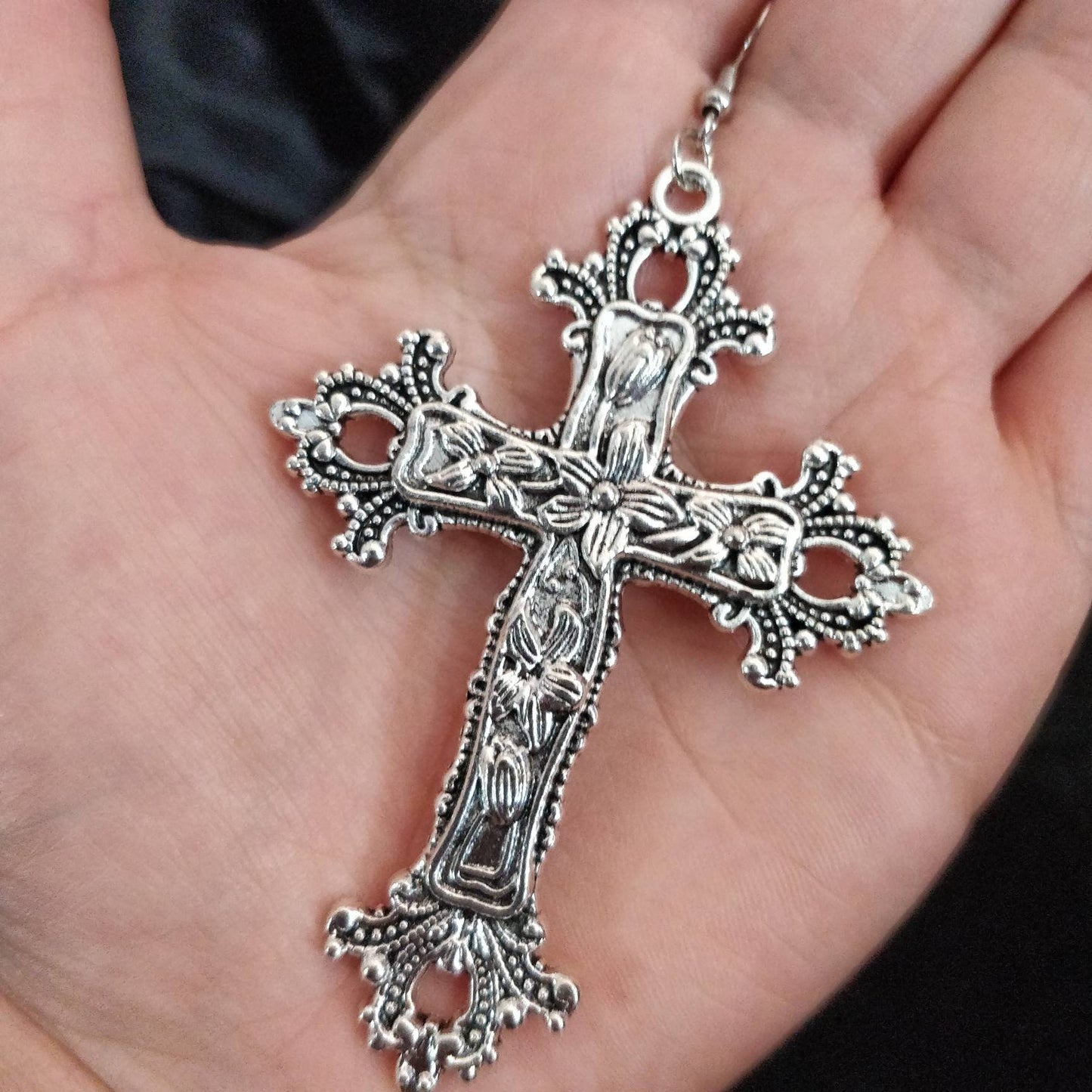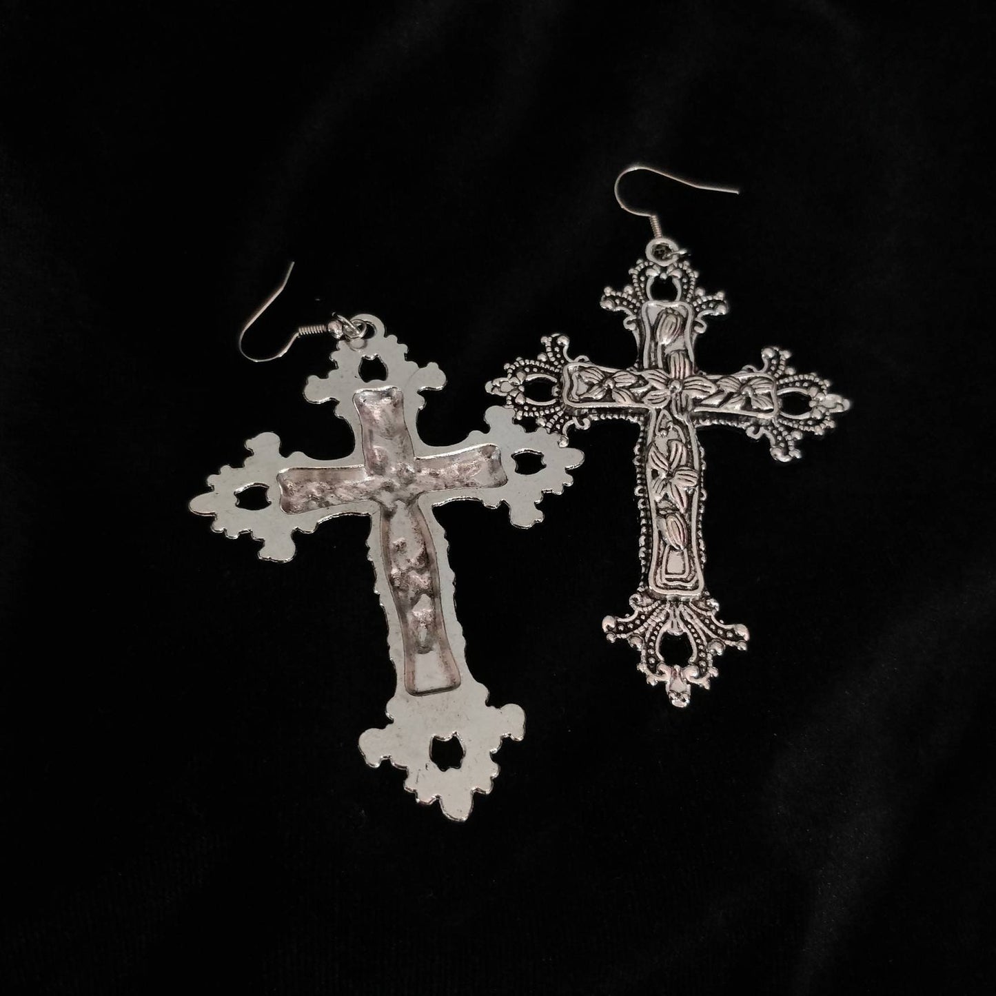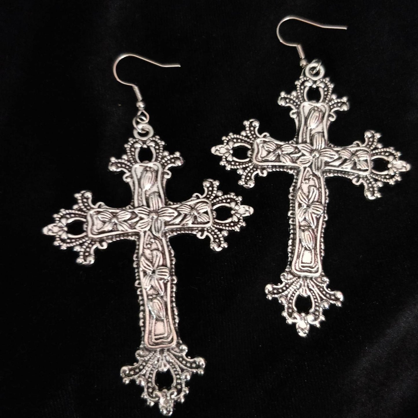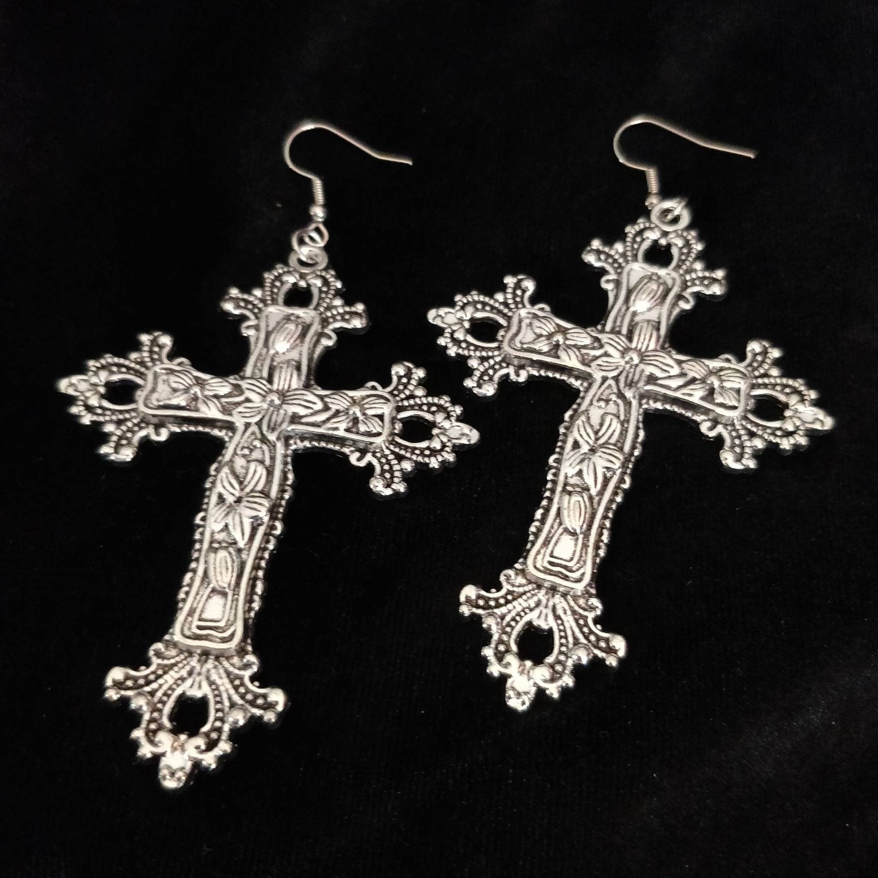 Gothic Cross Earrings - Flowery Statement Jewellery