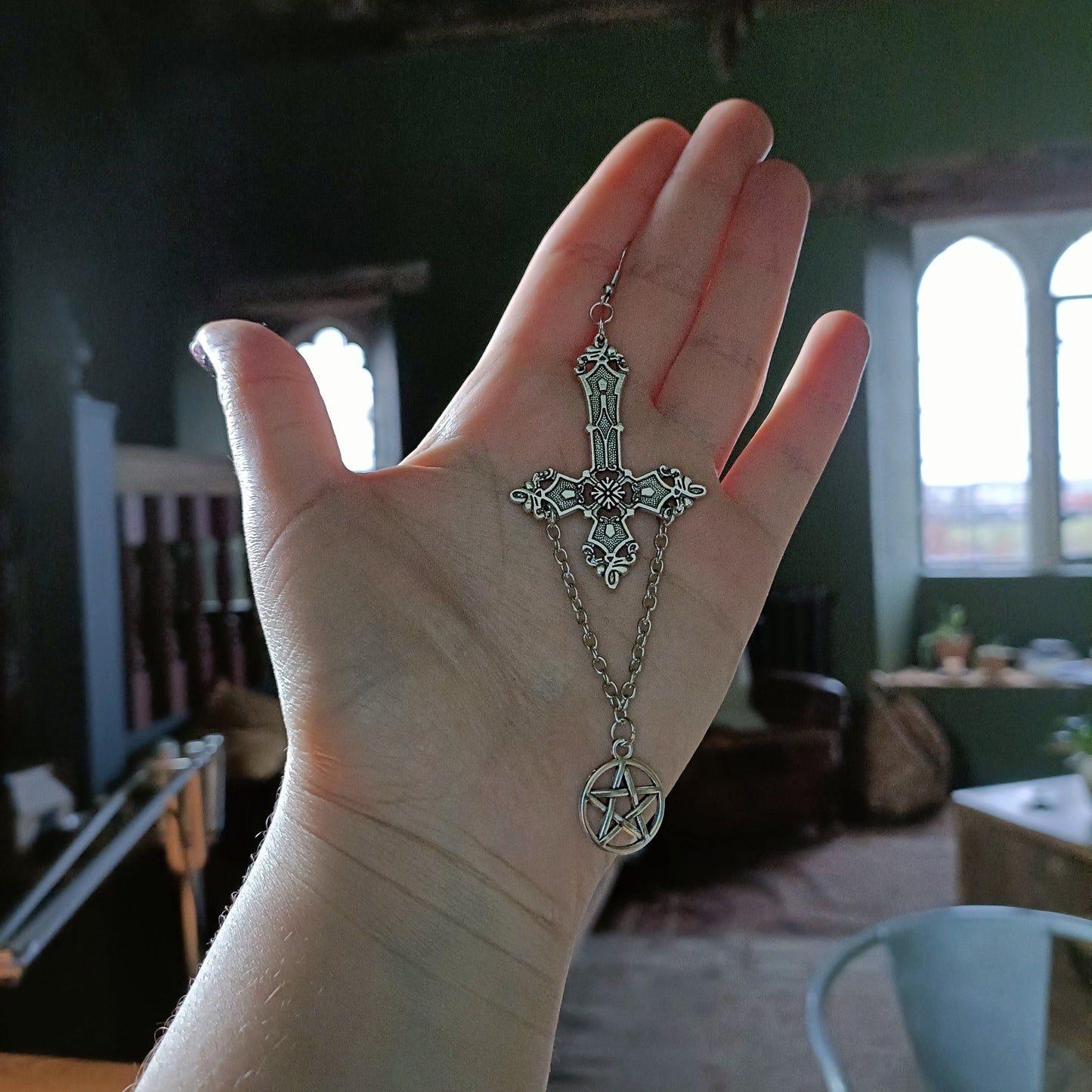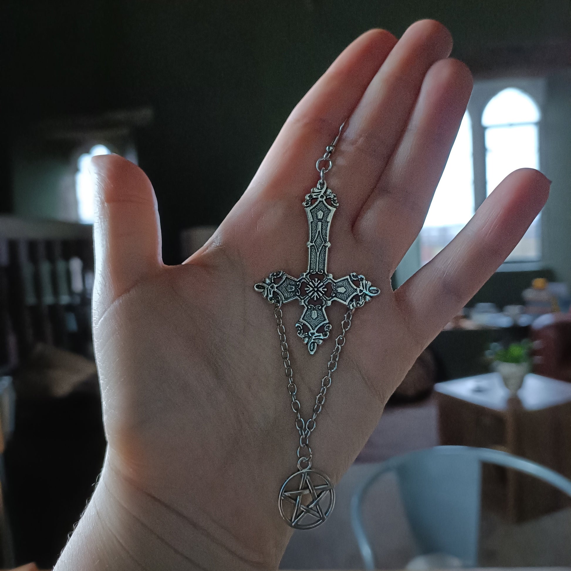 Inverted Crucifix and Pentagram Earrings