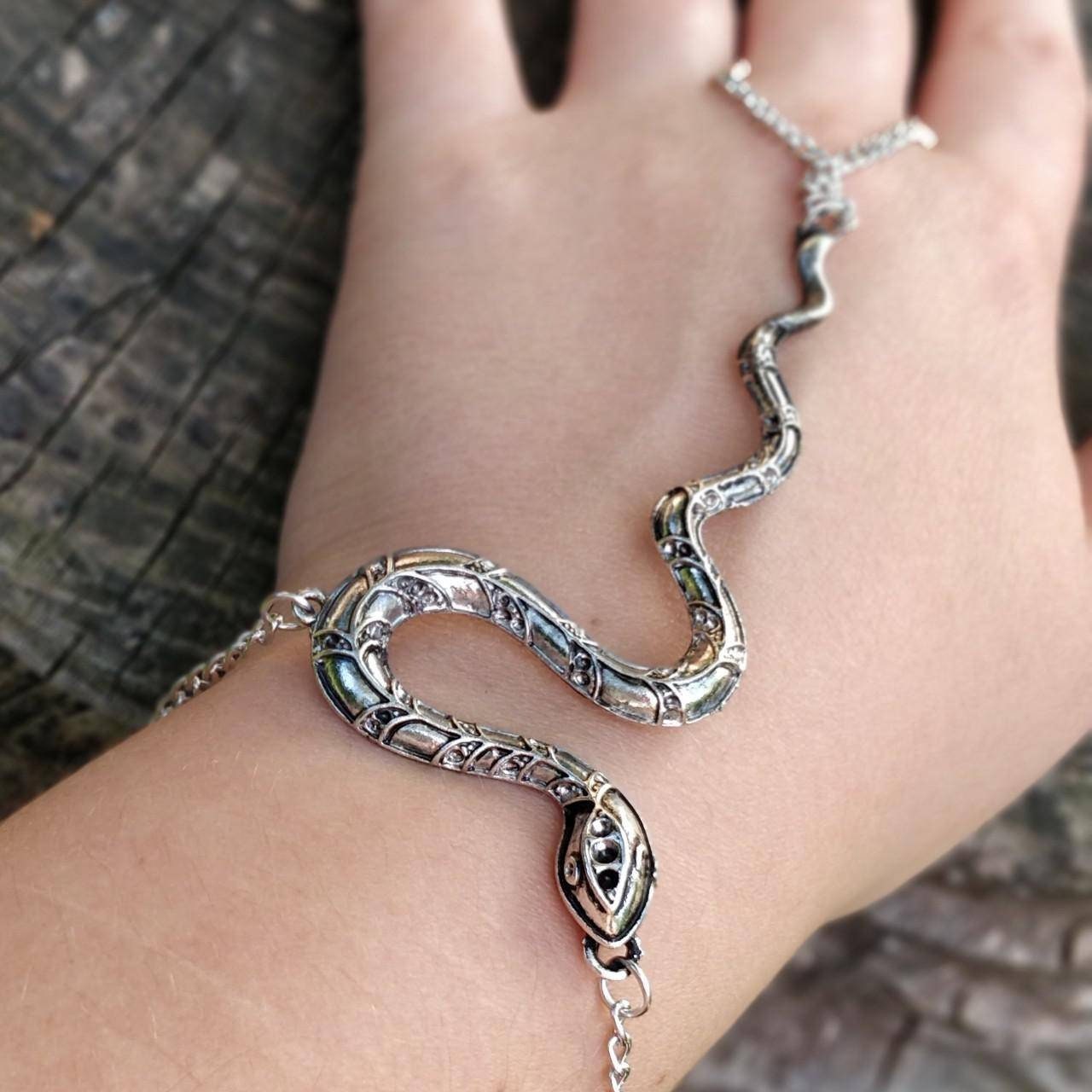 Snake Wrist Chain/ hand bracelet // Halloween goth occult mystic witch in silver or gold